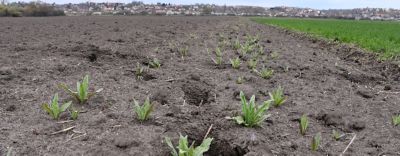 A tavaszi vetésű növények magágyának szánt területeken nagy mennyiségben megjelent a mezei acat!
