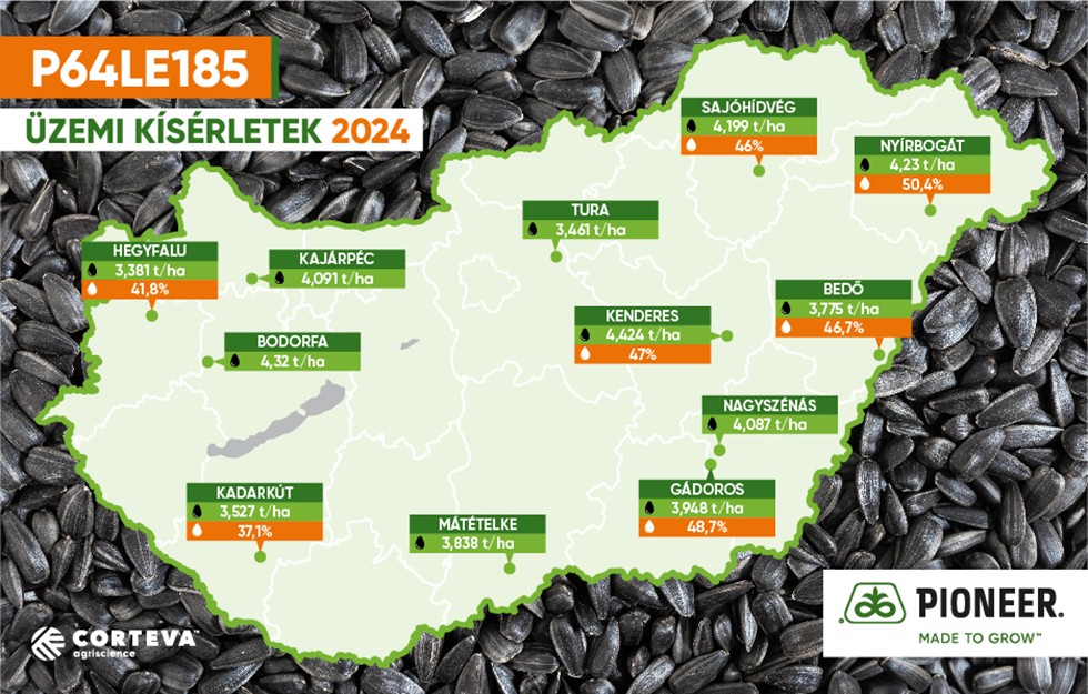 ,,Hajdú-Bihar vármegye déli részén gazdálkodunk, és 2025-ben a teljes napraforgó területünkön a Pioneer® P64LE185 hibridjét vetettük. Nyugodtan be tudtuk vállalni a tavalyi év termesztésének tapasztalatával. 2024-ben üzemi átlagban 4,45 t/ha termett. Korábban a P64LE25 hibridet termesztettük, és vele együtt bevált az Express™-toleráns technológia. A P64LE185 napraforgó még jobb, alacsonyabb szára könnyebb betakarítást tesz lehetővé. A manapság a vidékünkön uralkodó mostoha klimatikus viszonyok közepette minden szem többlettermés elérése létkérdés lett. A P64LE185 napraforgó esélyt ad a maximális hozam elérésére."