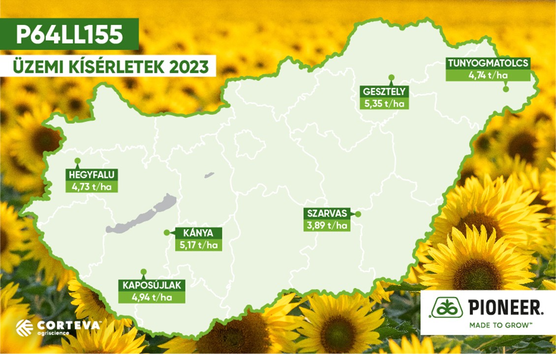 ,,P64LL155 egy linolsavas napraforgó hibrid, amely számos pozitív tulajdonsággal rendelkezik. A legjobb választás! Már második éve használom a hibridet és eddig csak pozitívumokat lehet mondani róla. A 2023-as időjárási viszontagságok alatt, és a 2024-es még küzdelmesebb extrém helyzetek ellenére is stabil, rekord eredményeket produkált. Nagyon magas a termésátlaga, jól ellenáll a fontosabb kórokozóknak, ami hozzájárul a termésbiztonsághoz. Viszonylag korán virágzik, ami előnyt jelenthet bizonyos termesztési körülmények között. A növénymagassága közepes, ami kedvező a betakarítás szempontjából. Fontos, hogy nem herbicidtoleráns, viszont a Viballa™ tökéletes kiegészítője!"